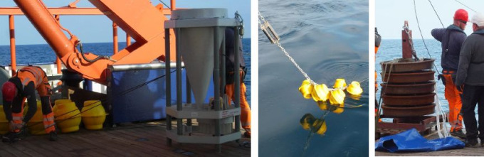 Die Arbeiten auf der Hauptstation wurden am Sonntag Nachmittag bei optimalen Wetterverhältnissen mit dem erfolgreichen Ausbringen einer Sedimentfallenverankerung in 2000 m Wassertiefe beendet. Die Sedimentfallen werden etwa anderthalb Jahre den stetigen Partikelregen zum Meeresboden auffangen.