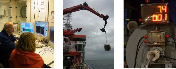 Die Pump-CTD wird vom Messraum aus mit 1 cm/s zur Aufnahme hochauflösenden vertikaler chemischen Profile im Bereich der Redoxkline eingesetzt.