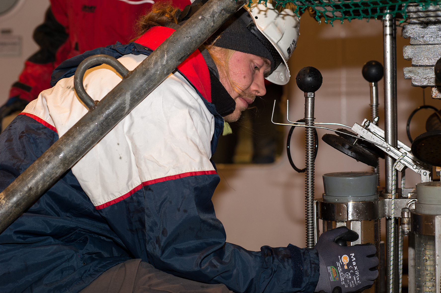 Ist das Schiff dann aufgerüstet, die Labore eingerichtet und die Crew genervt vom „kläglichen“ Versuch der Wissenschaft, den Einzug planvoll und strukturiert zu gestalten, beginnt das Schöpfen und Stechen und Baggern der Proben aus dem Meer, das Wühlen im Schlamm, dessen Gestank sich in Händen und Nase festsetzt, das Filtrieren, Abfüllen, Umfüllen und Messen von Wasserproben, alles am besten ohne Zeitverzug: Wir wollen frisches Material! Tagelang, wochenlang sind die einzigen Fixpunkte die Essenszeiten.