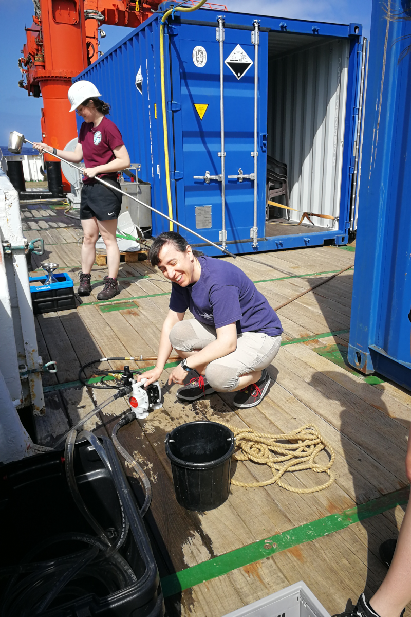 Aber genug vom Schlafen und Herumsitzen! Nach einem ausgiebigen Frühstück zogen wir unsere Sicherheitsschuhe an und begannen mit dem Auspacken der Container. Jeder packte mit an, um die Kisten zu den verschiedenen Laboren zu tragen. Nach und nach wurde eine Vielzahl von Versuchsaufbauten installiert. Da die Wellen auf See nie unterschätzt werden dürfen, muss jedes Gerät gesichert werden.