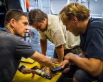 Fünf Mitarbeiter des IOW waren kürzlich auf Expedition mit dem Forschungsschiff METEOR. Die Fahrt startete am 7. Oktober in Recife und führte entlang 11° südlicher Breite von West nach Ost in das Küstenauftriebsgebiet vor Südwestafrika. Im Forschungsgebiet vor Namibia hat das IOW-Team drei Verankerungen aufgenommen und erneut ausgelegt. Zudem haben die Wissenschaftler und Techniker mit der Mikrostruktursonde kontinuierlich Temperatur, Salzgehalt und Turbulenz in den Auftriebsgebieten gemessen.
