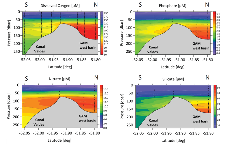 - Arbeitsgebiet 2: Der Golfo Almirante Montt ein anoxischer Fjord mit stratifizierter Wassersäule, in dem beide Fragestellungen untersucht werden.
