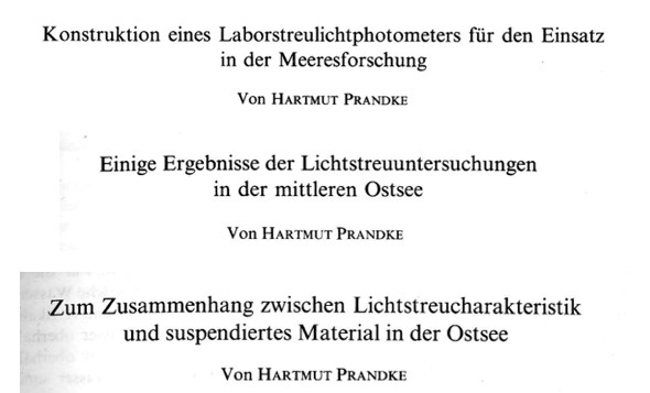 Marine optics programme started at Institute for Marine Research in Warnemünde with work by Hartmut Prandke on light scattering