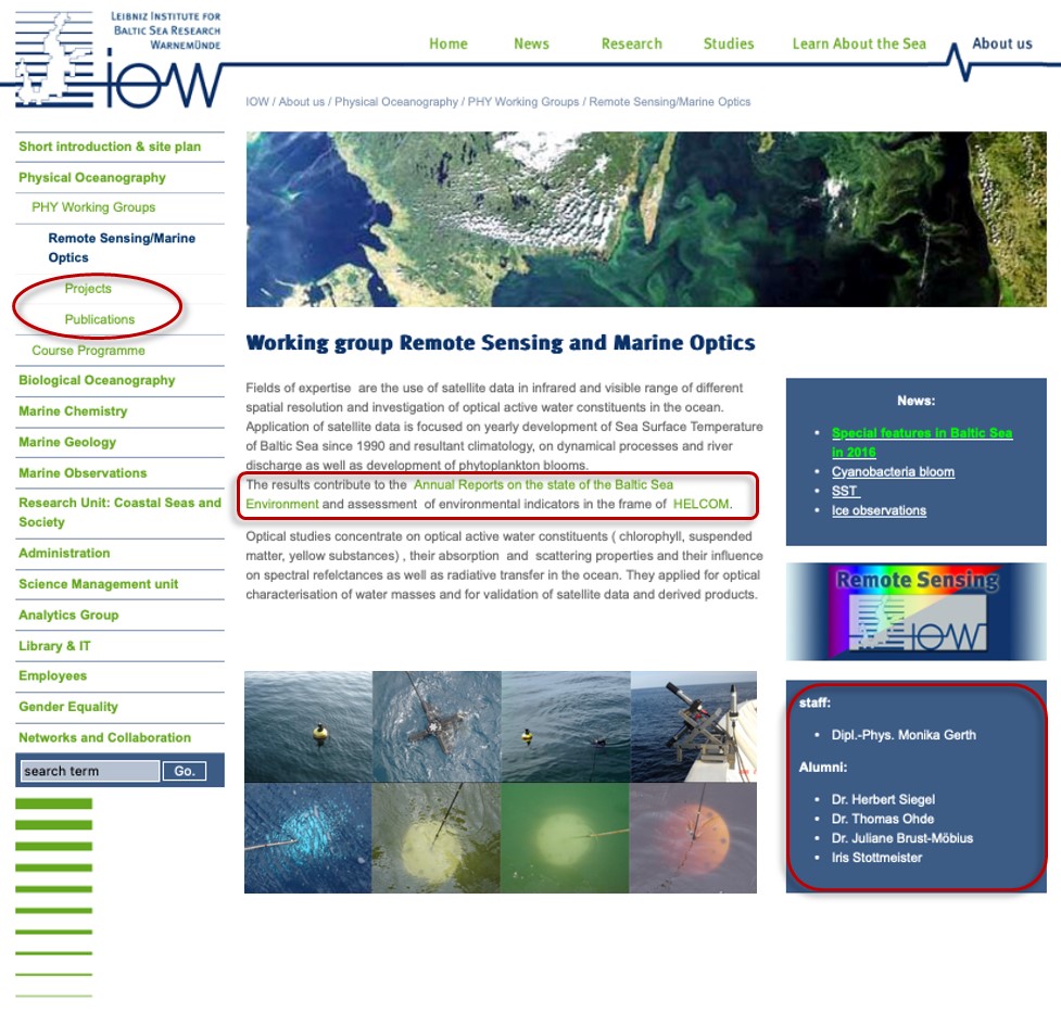Herbert Siegel extended the programme with measurements of spectral reflectance and inherent optical properties in different water types (i.e. dominated by phytoplankton, sediments or CDOM).