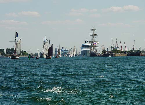 Hanse Sail 10. August 2003 Hafeneinfahrt, Segler, "Kruzenshtern" & "Crystal Symphony"