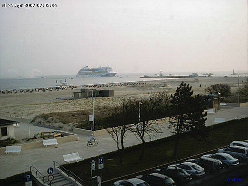 Blick von der Ostmole auf Warnemünde 03. Februar 2007