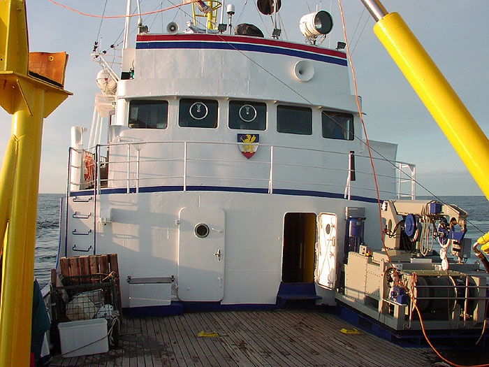 Terminfahrt März 2009 Achterdeck mit Schlauchboot