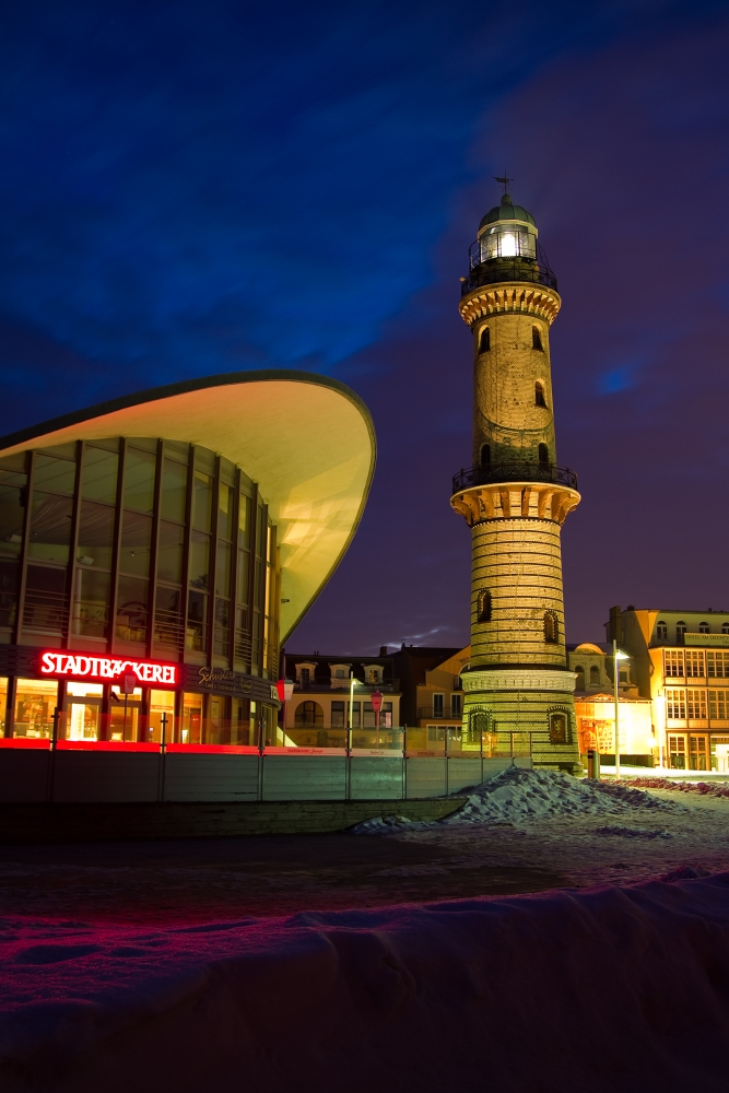 19. Februar 2010 Leuchtturm und Teepott in Warnemünde