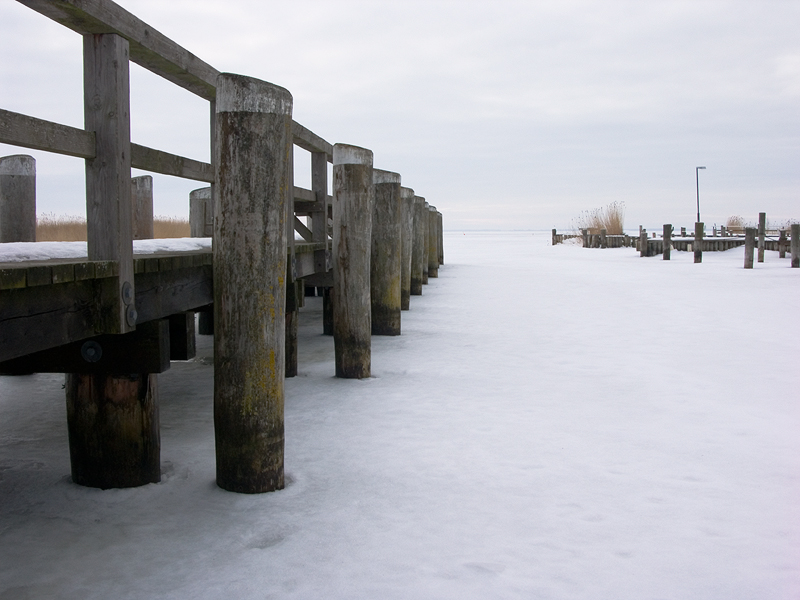 16. Februar 2010 Alte Landungsbrücke am Strand von Hohe Düne