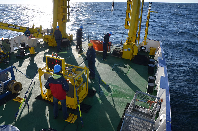 18. März 2013 Terminfahrt im März: Der Scanfish verschwindet im Wasser