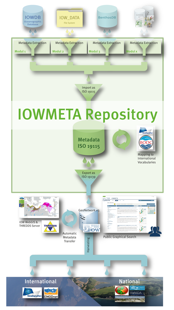 Das Metadaten-Informationssystem IOWMETA stellt einen öffentlich zugänglichen Katalog sowie eine zentrale Plattform für verteilte Forschungsdaten bereit, die am Leibniz-Institut für Ostseeforschung Warnemünde (IOW) erzeugt und gespeichert werden.