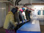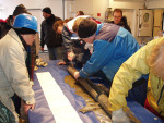 Hanö Bucht, 03.03.06, 08:47 Uhr - Zerlegen eins Kerns aus dem Muc durch die Studentinnen Aleksandra Novak und Paulina Lis aus Stettin.