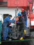 Zentrales Arkona Becken, 04.04.06, 17:46 Uhr - Entnahme eines Kerns aus dem Schwerelot.