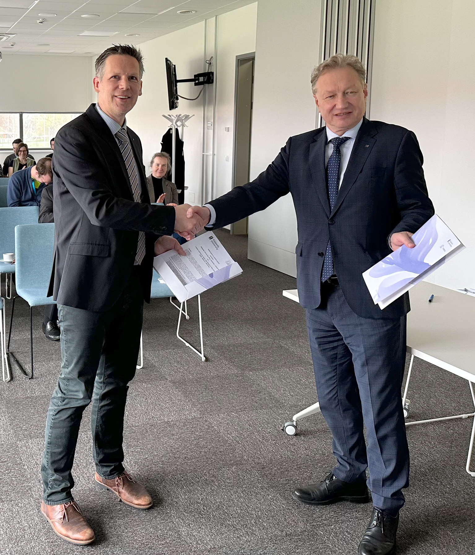 IOW-Direktor Oliver Zielinski (l.) und Artūras Razbadauskas (r.), Rektor der Universität Klaipeda, unterzeichneten ein Memorandum of Understanding zum Ausbau gemeinsamer Forschung und Lehre. (Foto: IOW)