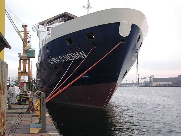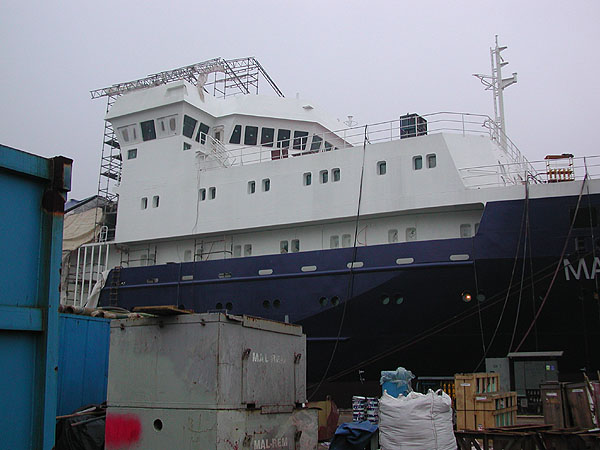 Impressionen aus dem November 2004: das Schiff hat die 'Naturfarben' endlich abgelegt und strahlt deutlich erkennbar als Forschungsschiff in seinen blau/weißen Farben