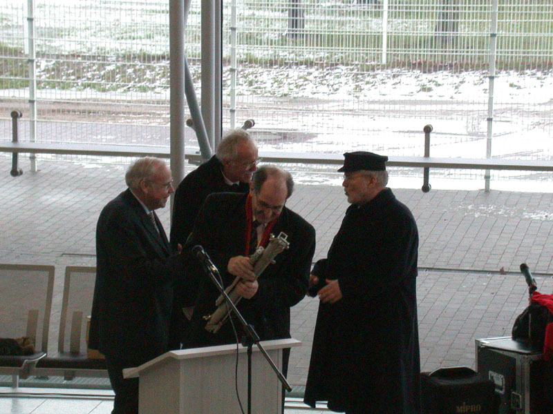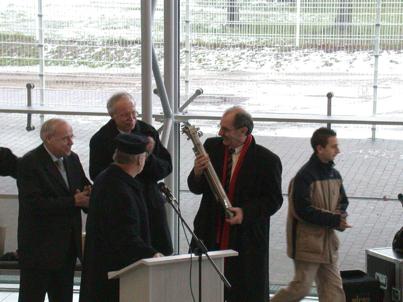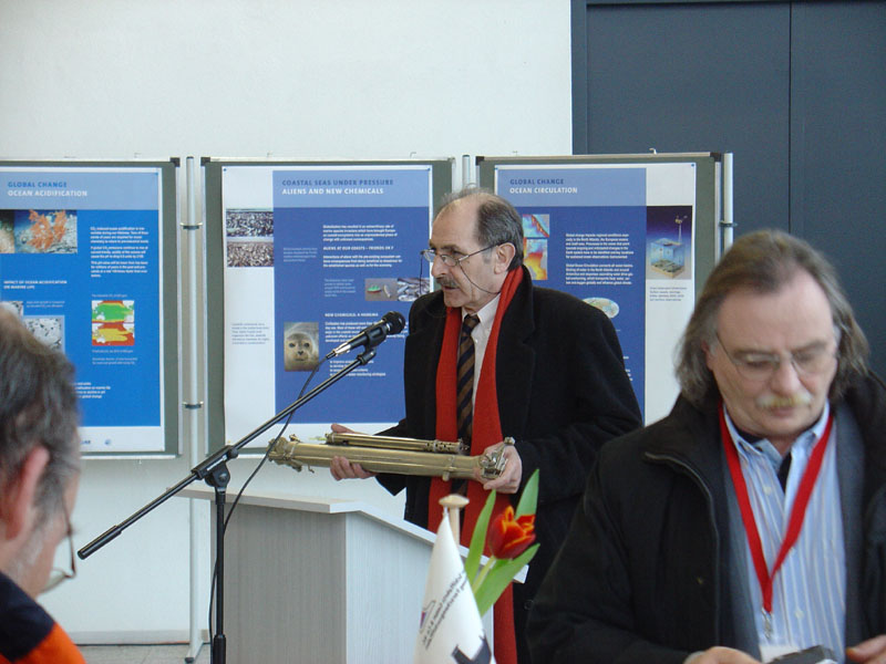 Der Ministerpräsident überreicht dem Direktor des IOW einen Nansenwasserschöpfer als Erinnerung an den Festakt