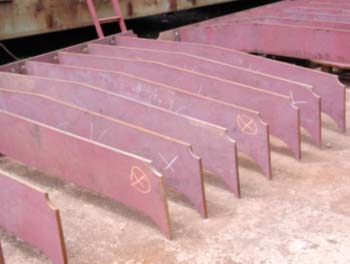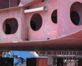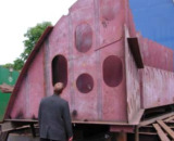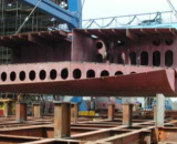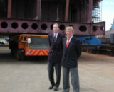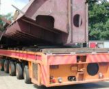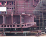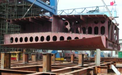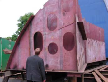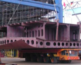 ...das erste größere Teil einer Sektion liegt auf dem Tieflader bereit zur Kiellegung...