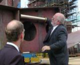 ...Reden werden gehalten (Herr Dipl.-Ing. H. Kahl, Geschäftsführer Kröger Werft und Herr Ministerialdirigent H. Fischer, stellvertretender Staatssekretär, Ministerium für Bildung, Forschung und Kultur, Mecklenburg-Vorpommern, von links)...