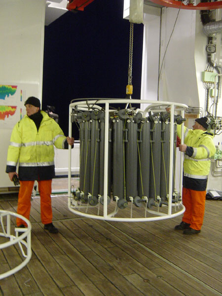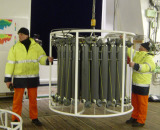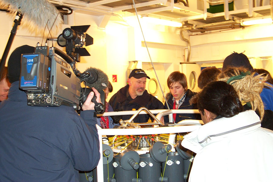 Dr. Ronski vom Alfred-Wegener-Institut für Polar- und Meeresforschung Bremerhaven bespricht mit Herrn Bosselmann den Einsatz des CTD