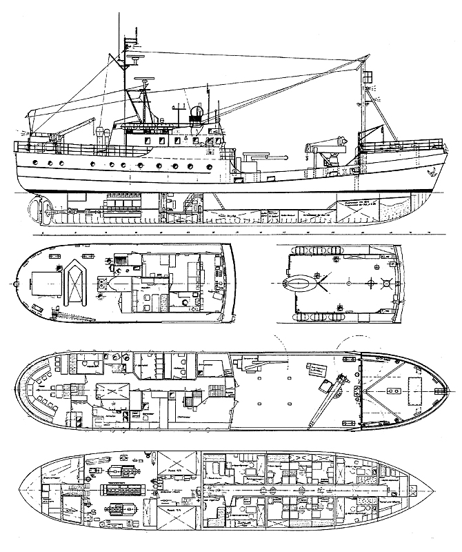 Von achtern, mit Schleppkörper des Seemagnetographen