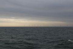 The Merian departs punctually at 8:30. The weather is calm as we sail down the Ems towards the North Sea. On our way, we are accompanied by lots of wind energy plants.