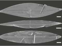 One biomarker the scientists of MSM 99 Deep Baltic are especially interested in, is called IP25 (Ice Proxy with 25 Carbon Atoms), it is exclusively produced by specific algae, more precisely diatoms (Fig 1). These diatoms live only in the capillaries at the underside of sea ice, which is filled with hyper saline water. When the sea ice melts, the ice algae and the included biomarkers are deposited at the sea floor. So far, IP25 is the only direct method to reconstruct past sea ice changes.