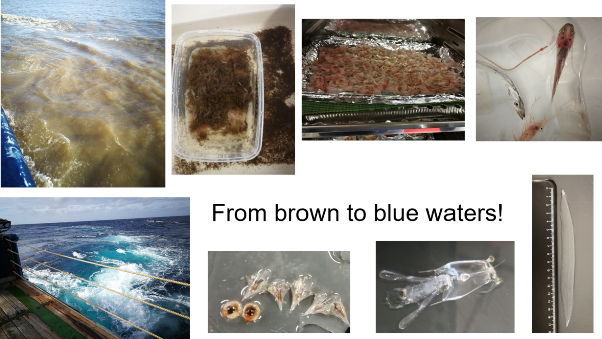 The mesozooplankton catches via our Multinet already showed that we have largely different communities in the light limited, detritus-dominated brown waters of the Amazon estuary (Picture. 3, upper row) compared to the green and blue waters further down the Amazon river plume (Picture. 3, lower row). Our hypothesis is that the stability of the habitat together with the food quality may trigger changes in the food web structure and in the transfer efficiency of mass and energy between trophic levels in these different waters. Let’s wait for the EA-IRMS and GC-C-IRMS results to put the food web puzzle back together and to resolve this hypothesis!