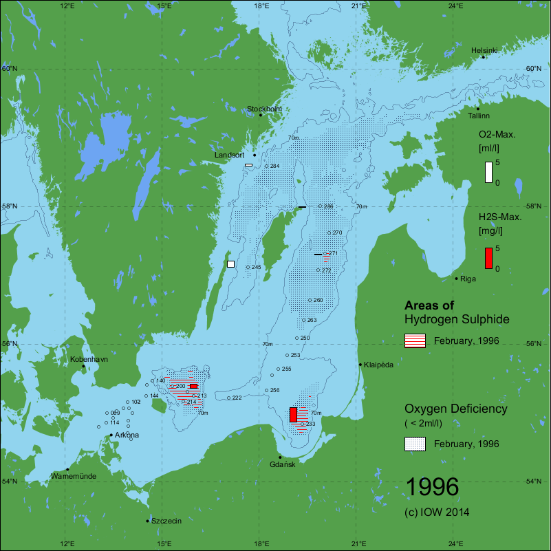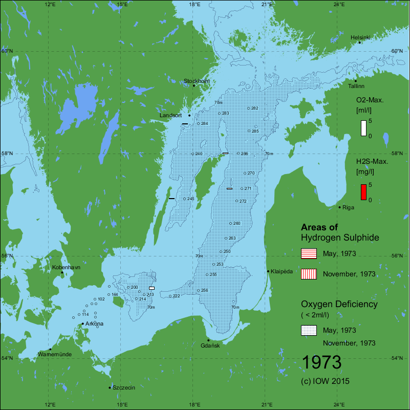 During the first three quarters of the last century these major inflows were recorded more or less regularly. Since the mid-1970s, their frequency and intensity have decreased.The longest stagnation period ever recorded lasted from the beginning of 1983 until the end of 1992 and was terminated by the very strong single inflow event in January 1993 and subsequent smaller inflows in winter 1993/1994. For the first time since 1977 the deep water in the whole Baltic Sea was oxic whereby oxygen reached highest concentrations in the Gotland Deep area since 1930s.