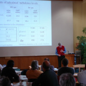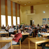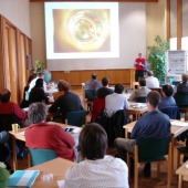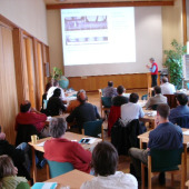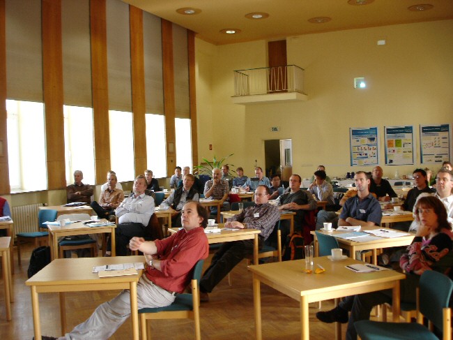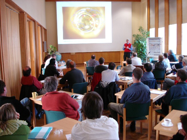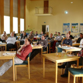 The lecture hall of IOW, people listening to a presentation